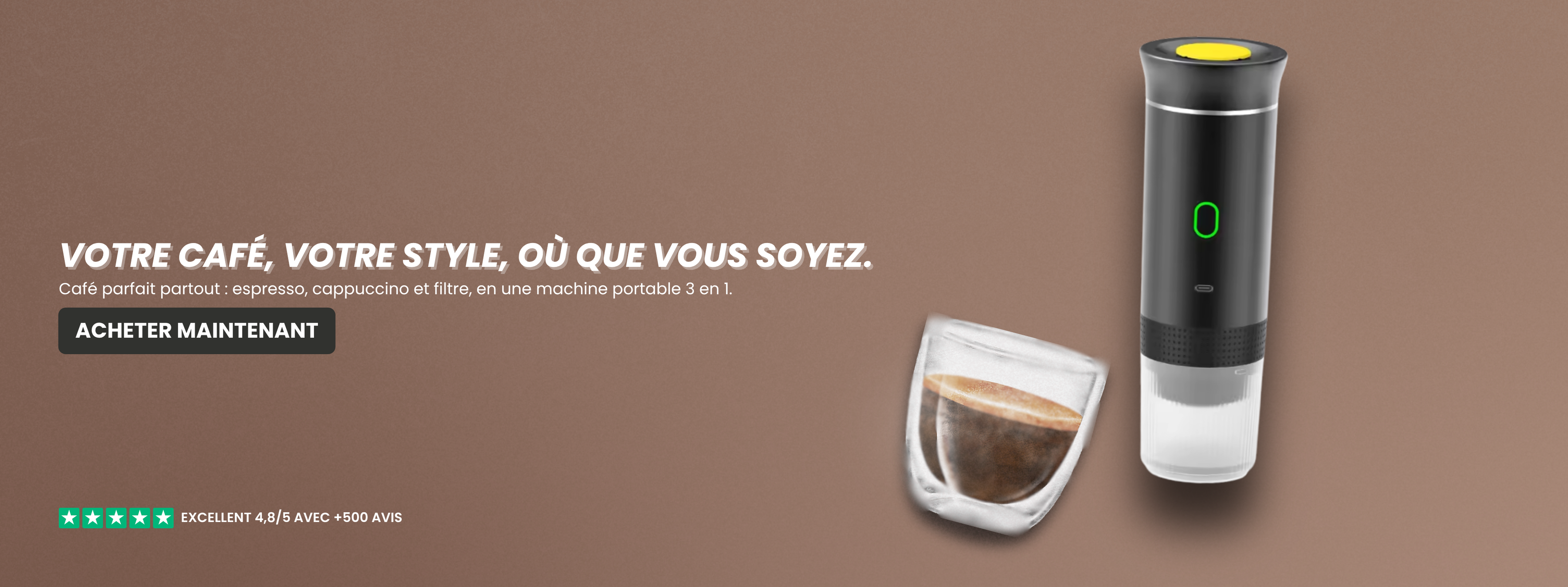CamilleAcheteur vérifiéCafé à emporterAdieu les mauvaises pauses café ! Cette machine portable me suit partout, même en camping. Elle chauffe rapidement et fait un café digne d'un barista. Si vous êtes un vrai amateur de café, foncez !Cela a-t-il été utile ? 0 0